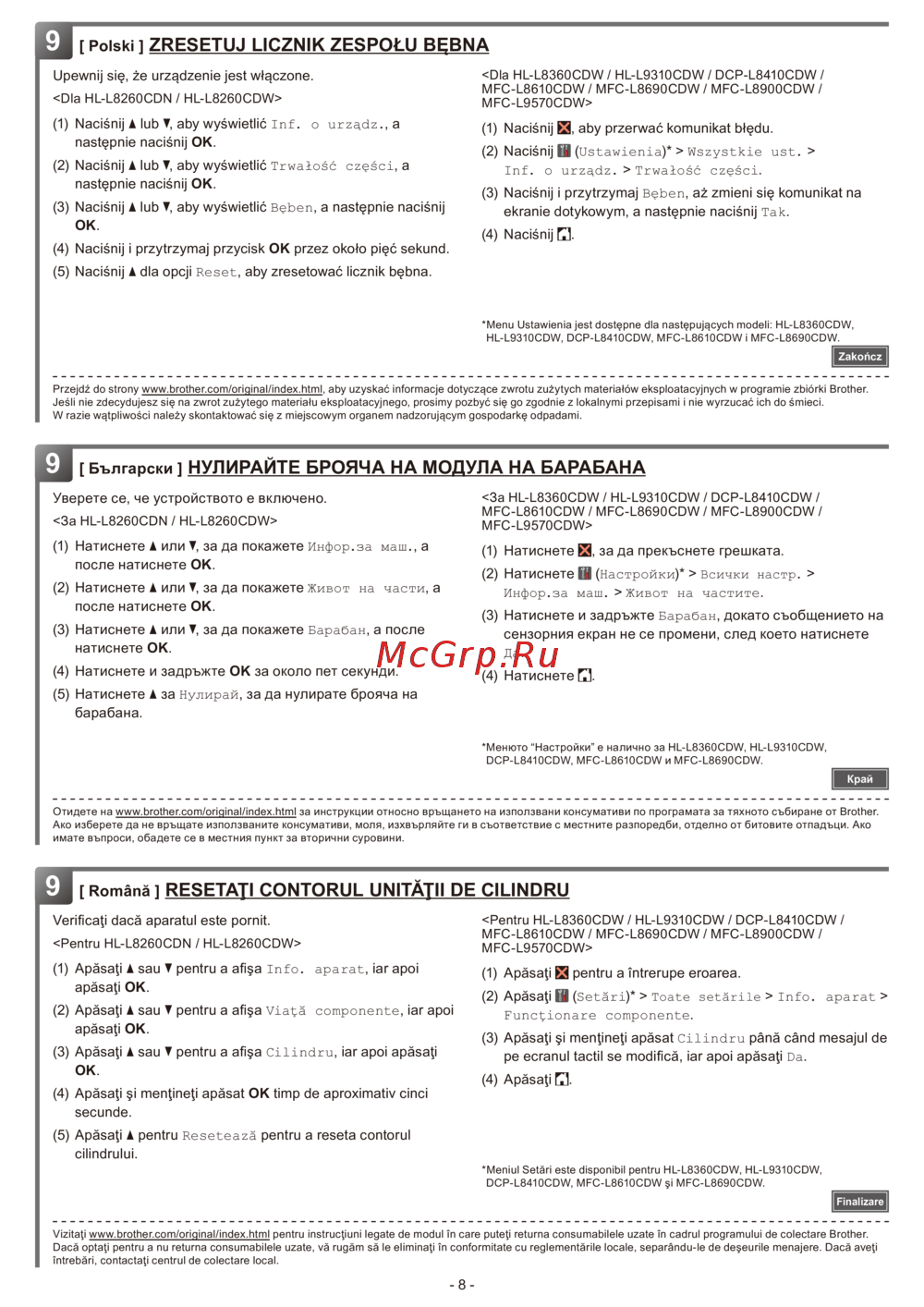 MFC-L8610CDW / MFC-L8690CDW / MFC-L8900CDW /