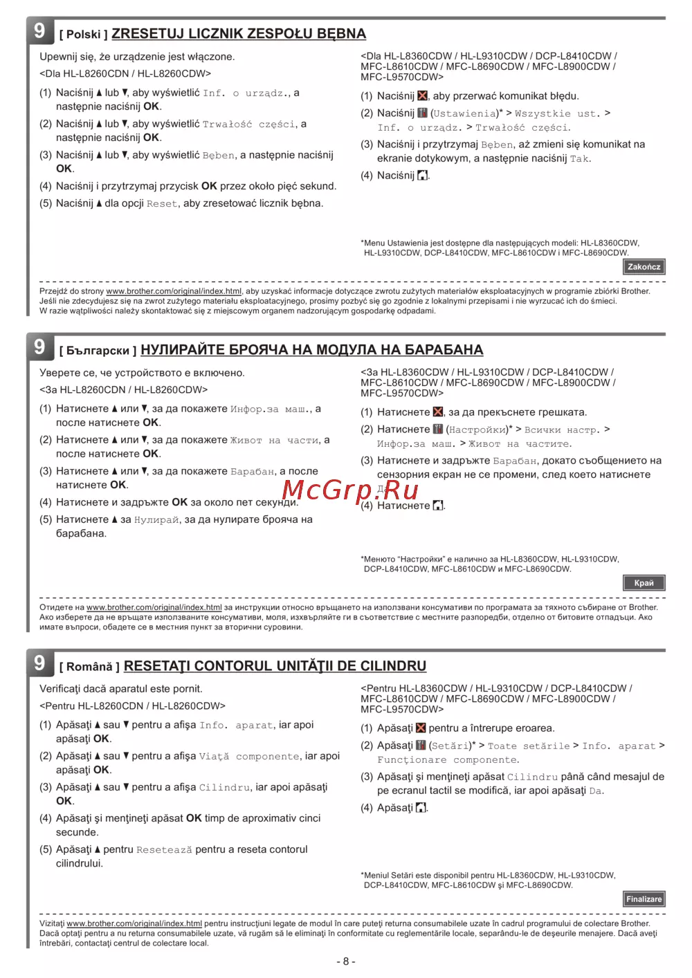 ![Brother HL-L8260CDW [9/11] Нулирайте брояча на модула на барабана](/views2/1469128/page9/bg9.png)