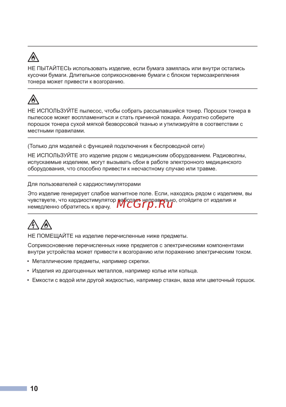 Brother HL-L8260CDW — правила безопасного использования устройства и предотвращения возгораний [10/23]