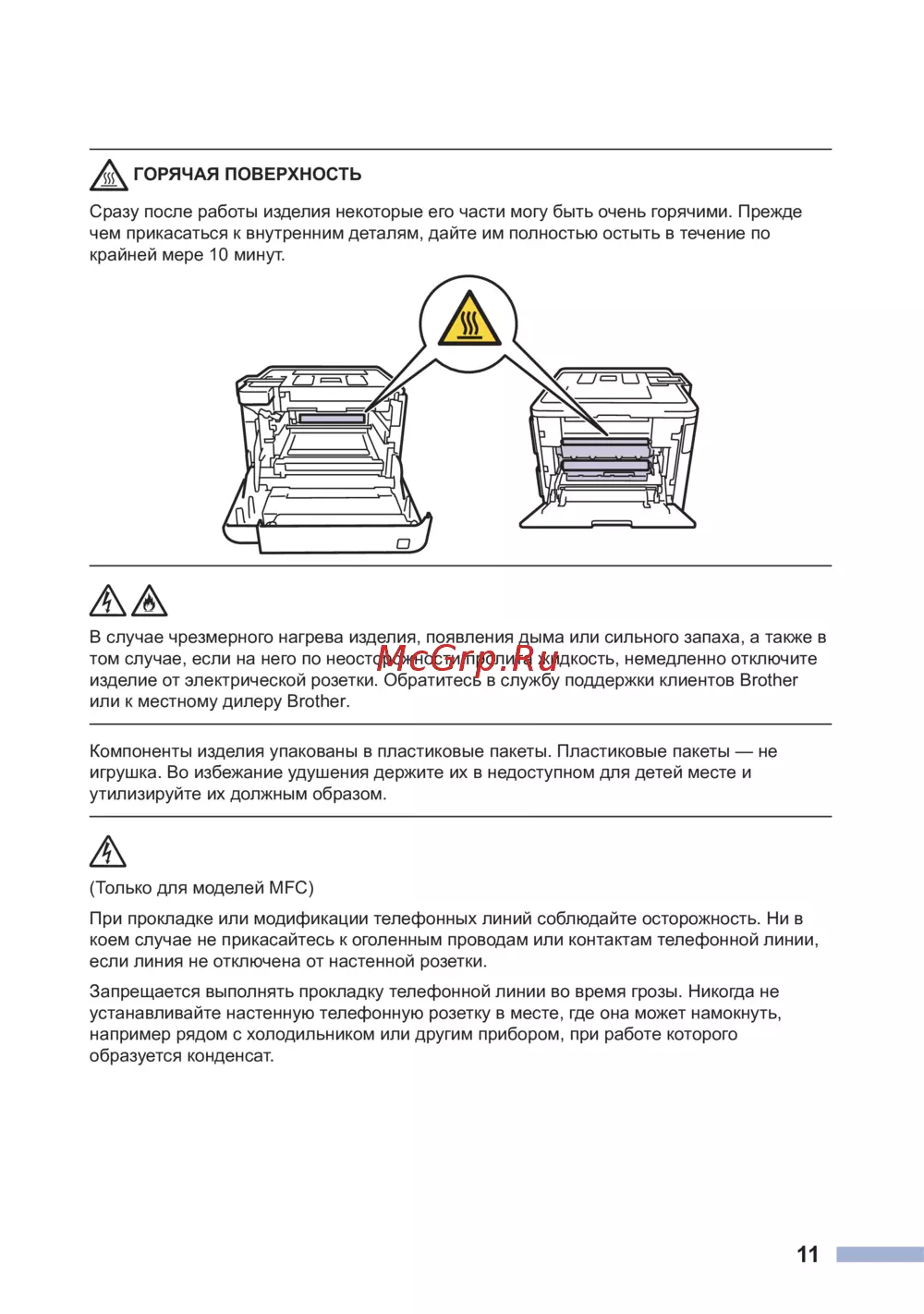 Brother HL-L8260CDW — безопасность при использовании электрических устройств и их компонентов [11/23]