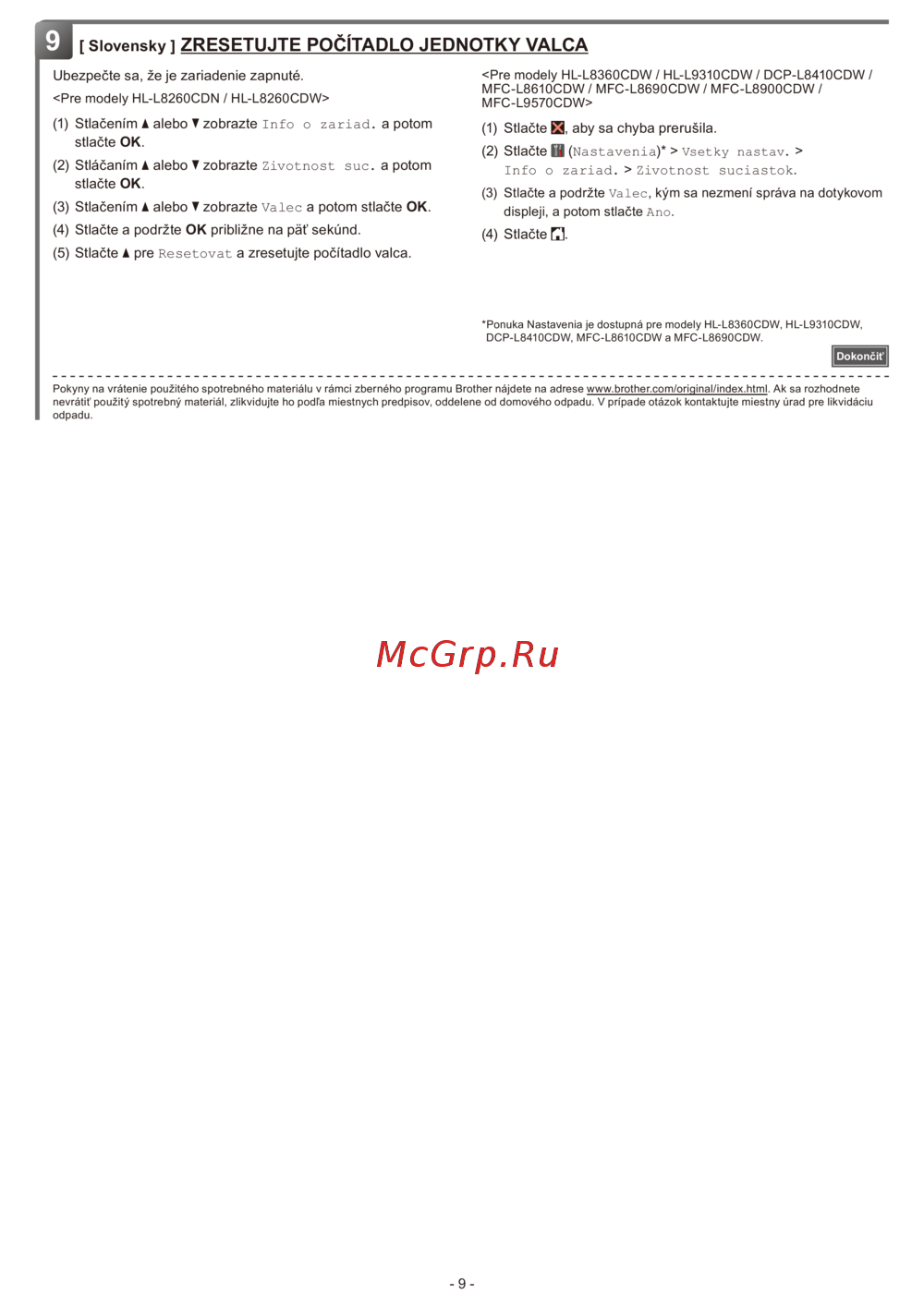 Brother HL-L8360CDW — pokyny na vrátenie a resetovanie počítadla valca zariadení [10/11]