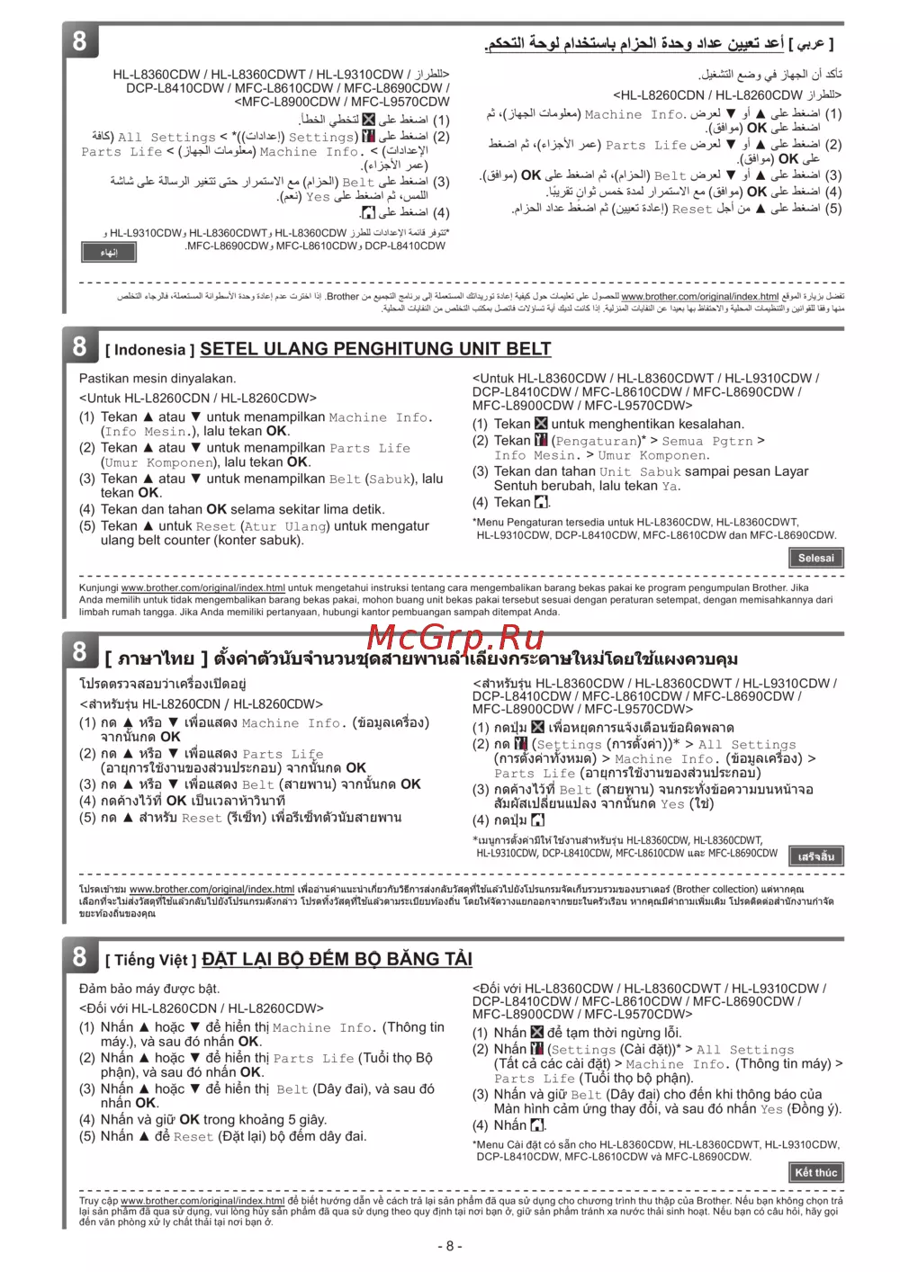 Brother HL-L8360CDW [9/12] Đặt lại bộ đếm bộ băng tải