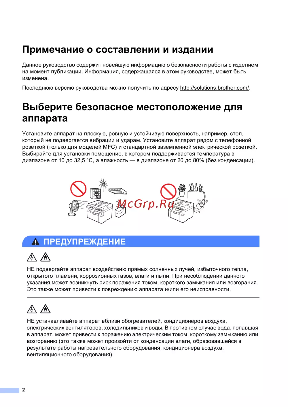 - Выберите безопасное местоположение для аппарата p.2