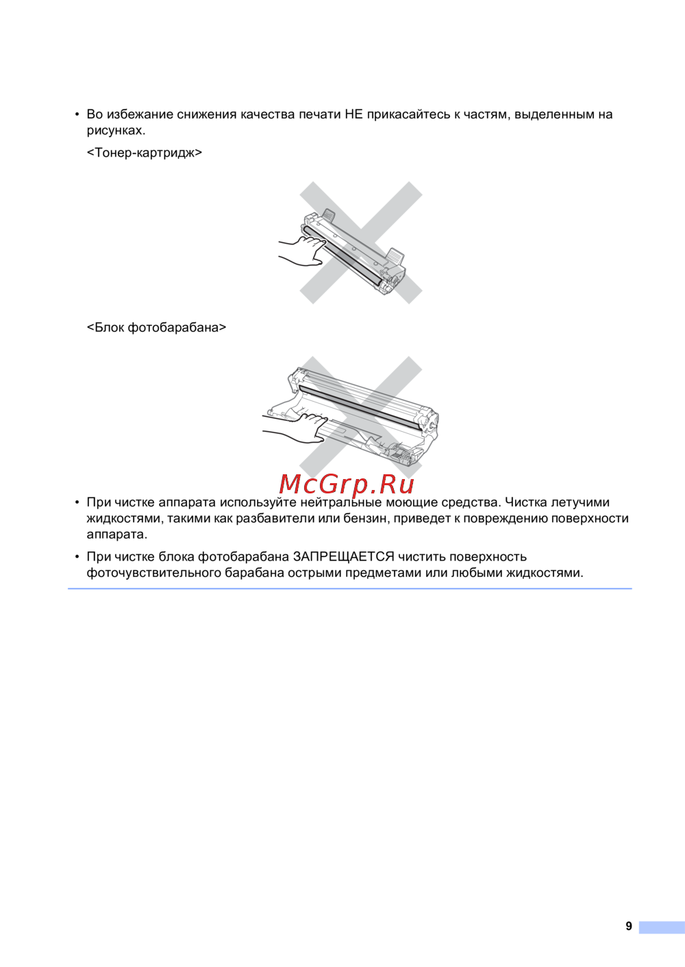 фоточувствительного барабана острыми предметами или любыми жидкостями.
