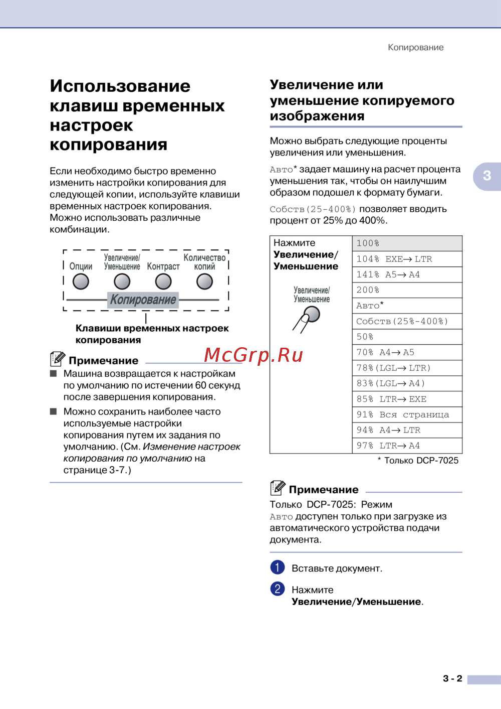 - Использование автоматического устройства подачи документа adf только dcp 7025 p.11