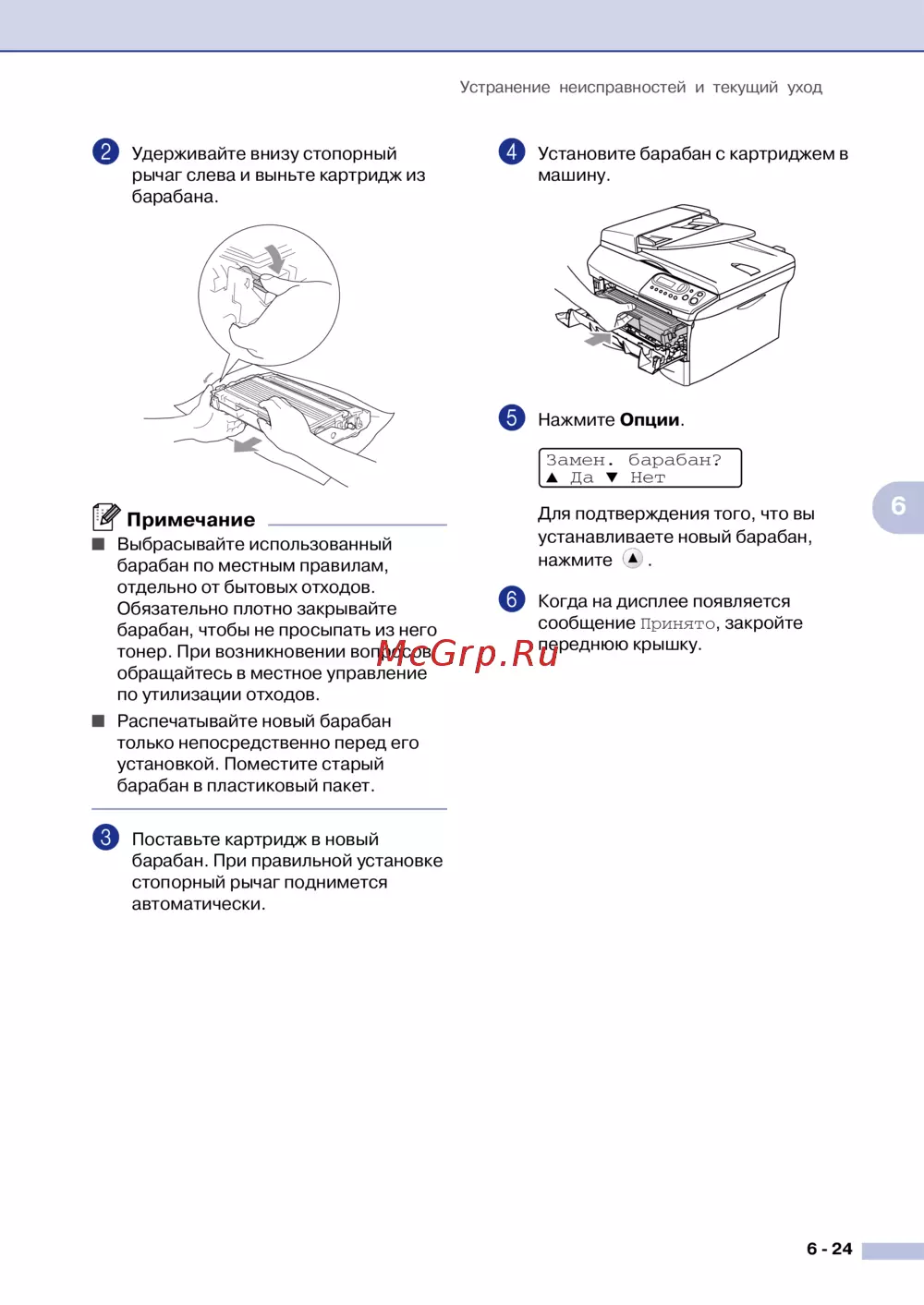 Brother DCP 7010 — устранение неисправностей и замена картриджа в принтере [55/70]