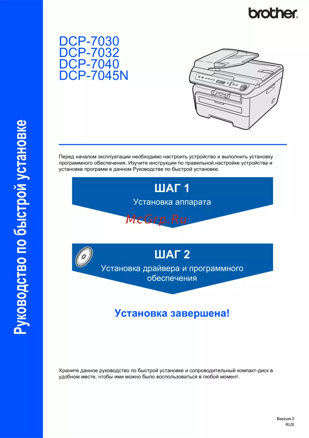 - Руководство по быстрой установке dcp 7030 dcp 7032 dcp 7040 dcp 7045n p.1