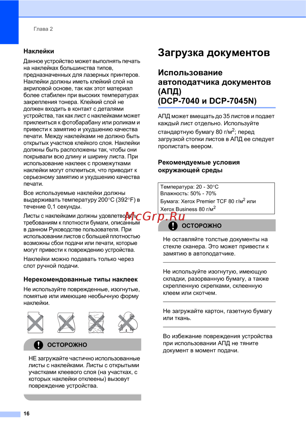 - Замятие документов только dcp 7040 и dcp 7045n p.64