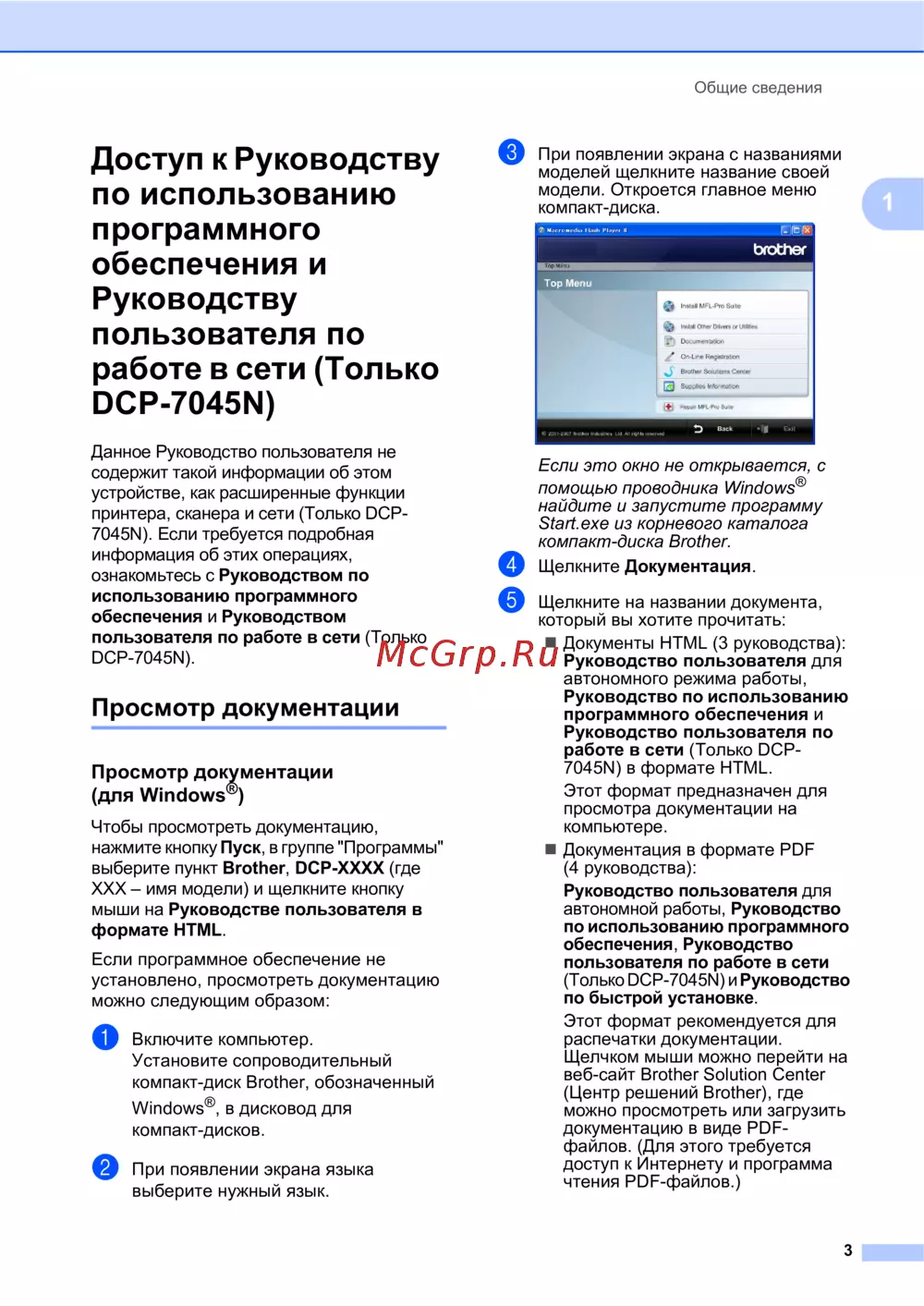 ![Brother DCP-7045N [9/107] Доступ к руководству по использованию программного обеспечения и руководству пользователя по работе в сети только dcp 7045n](/views2/1027018/page9/bg9.png)