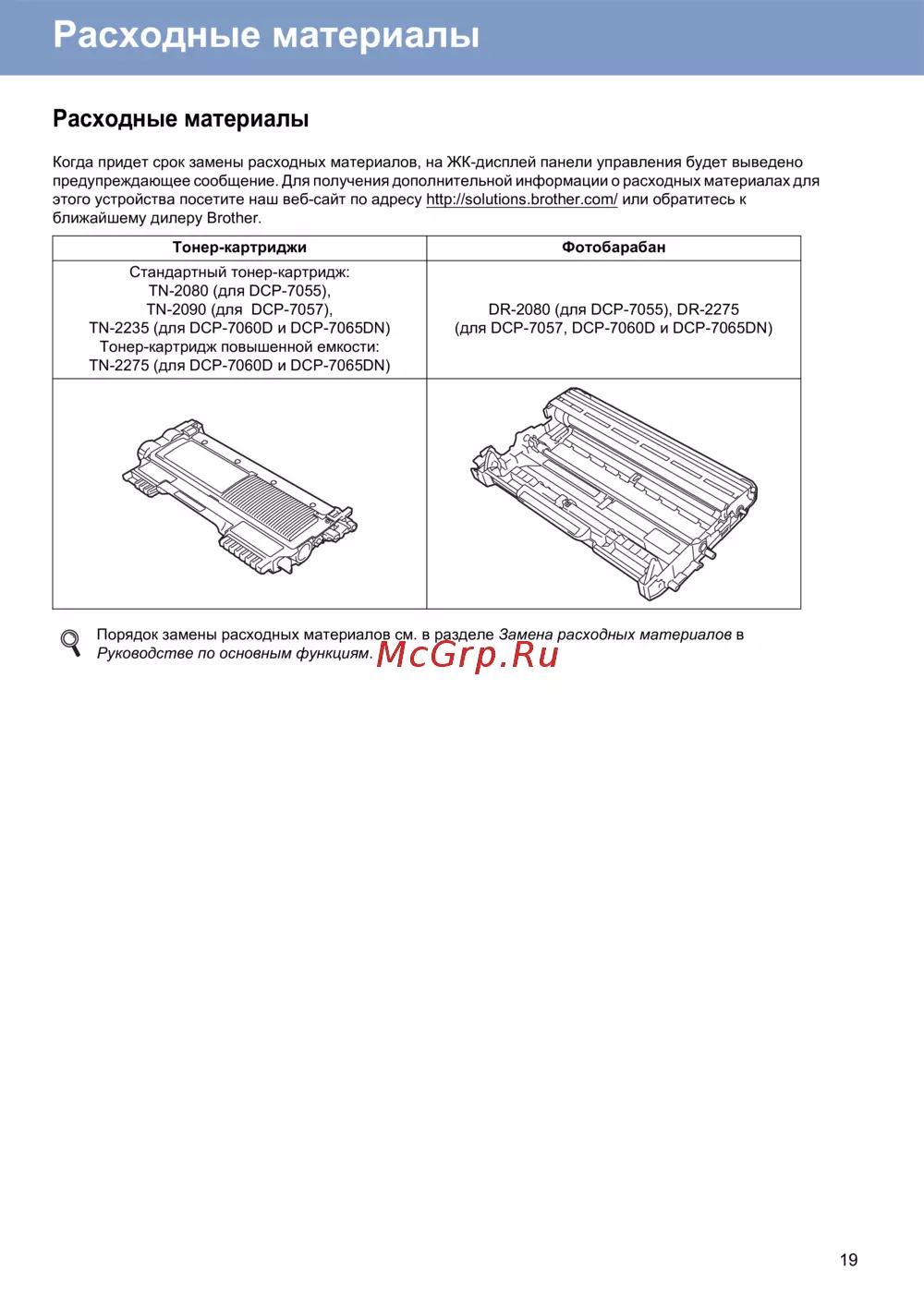 ![Brother DCP-7055 [19/20] Расходные материалы](/views2/1132246/page19/bg13.png)
