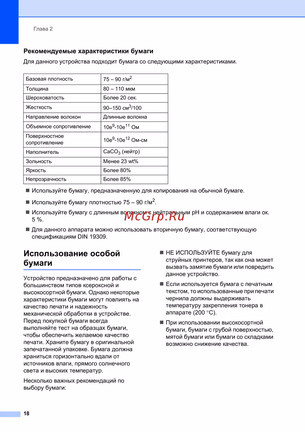 Рекомендуемые характеристики бумаги 2