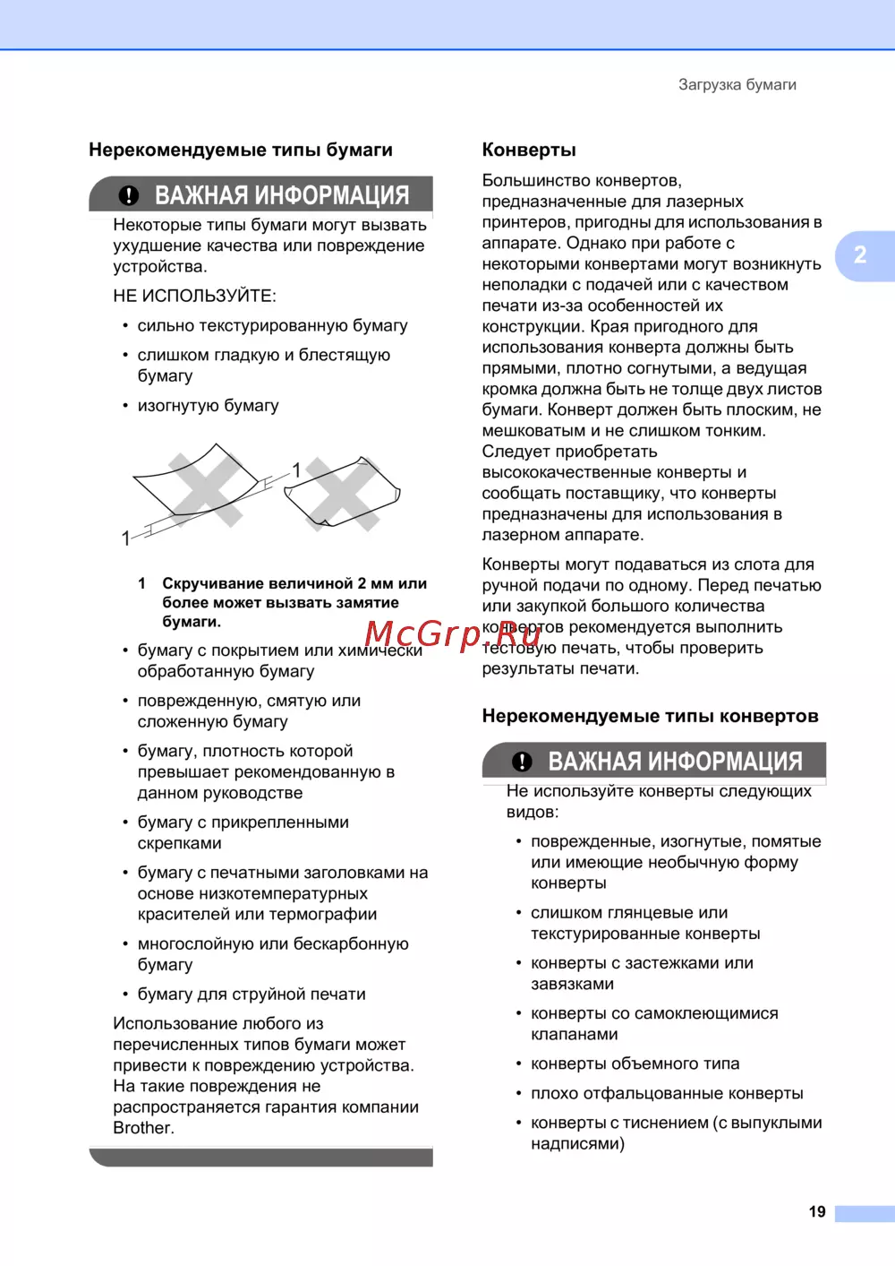 ![Brother DCP-7070DW [27/126] Нерекомендуемые типы конвертов](/views2/1044568/page27/bg1b.png)