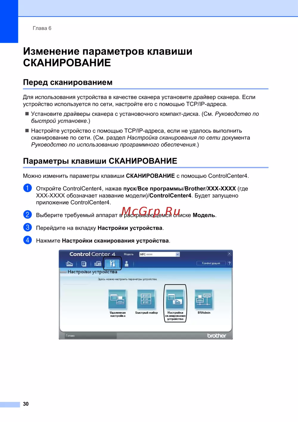 a Откройте ControlCenter4, нажав пуск/Все программы/Brother/XXX-XXXX (где