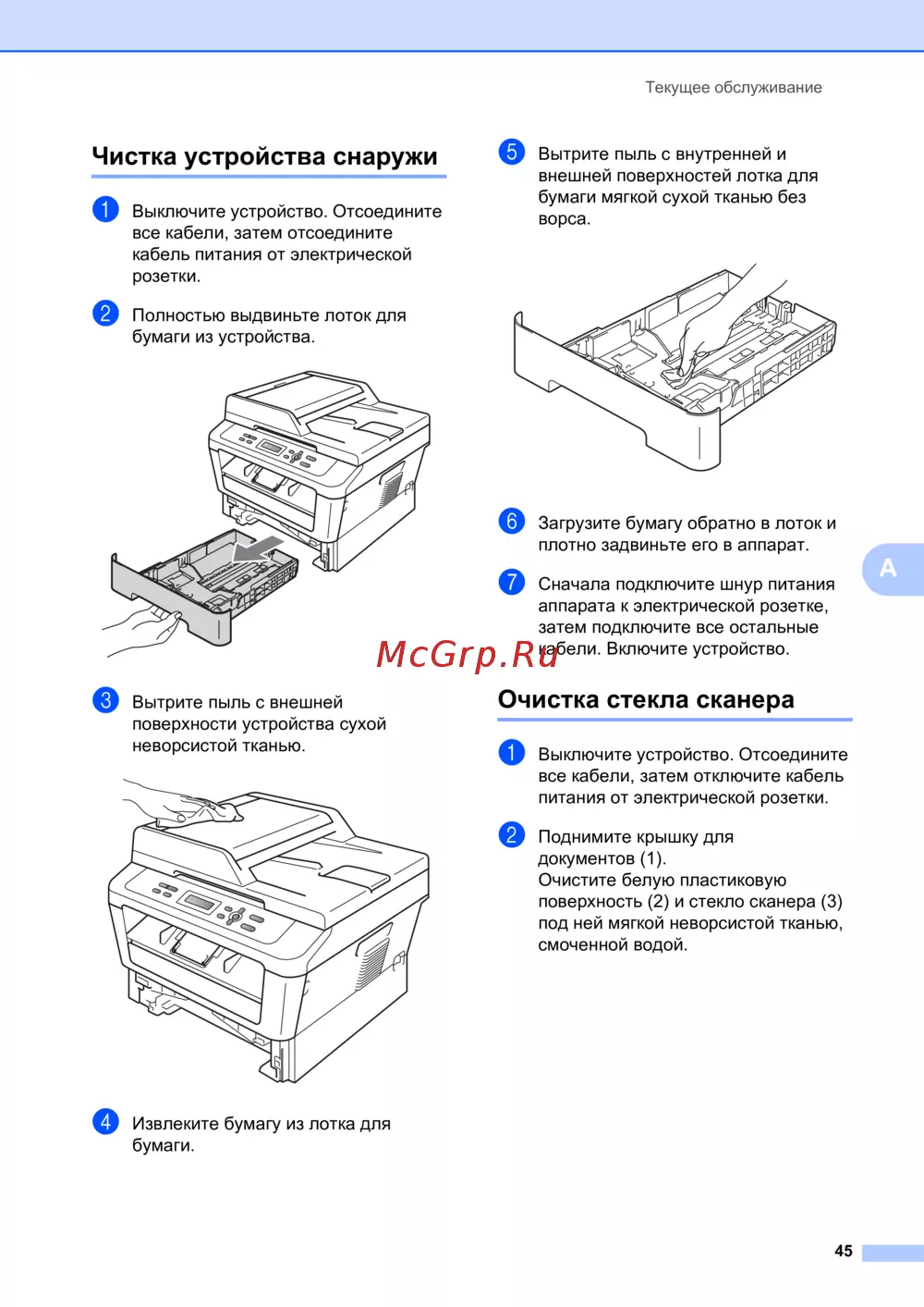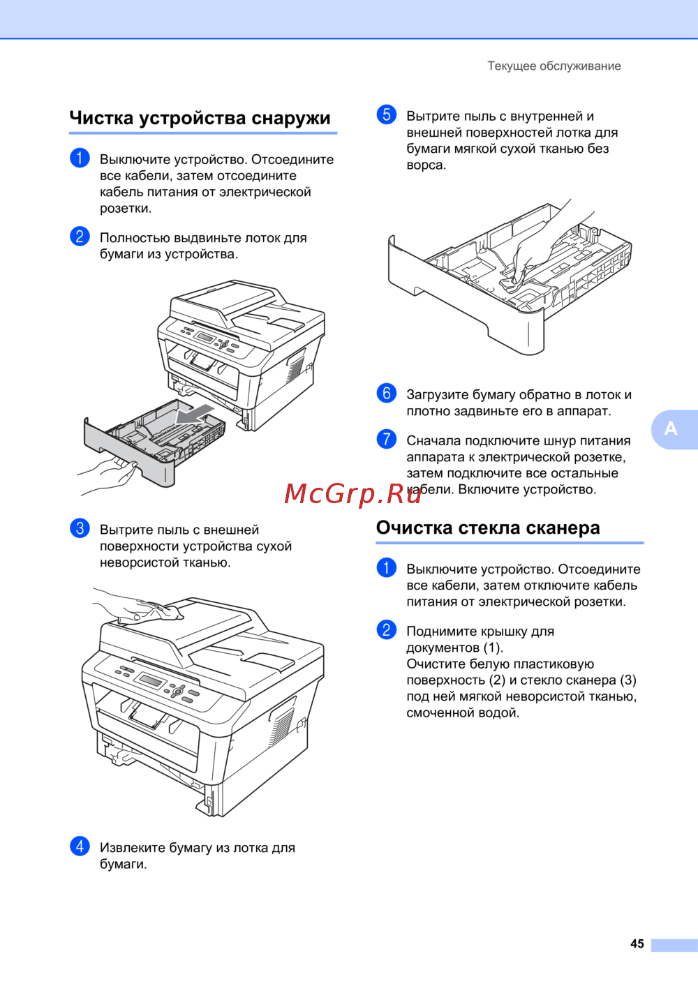 Чистка устройства снаружи A
