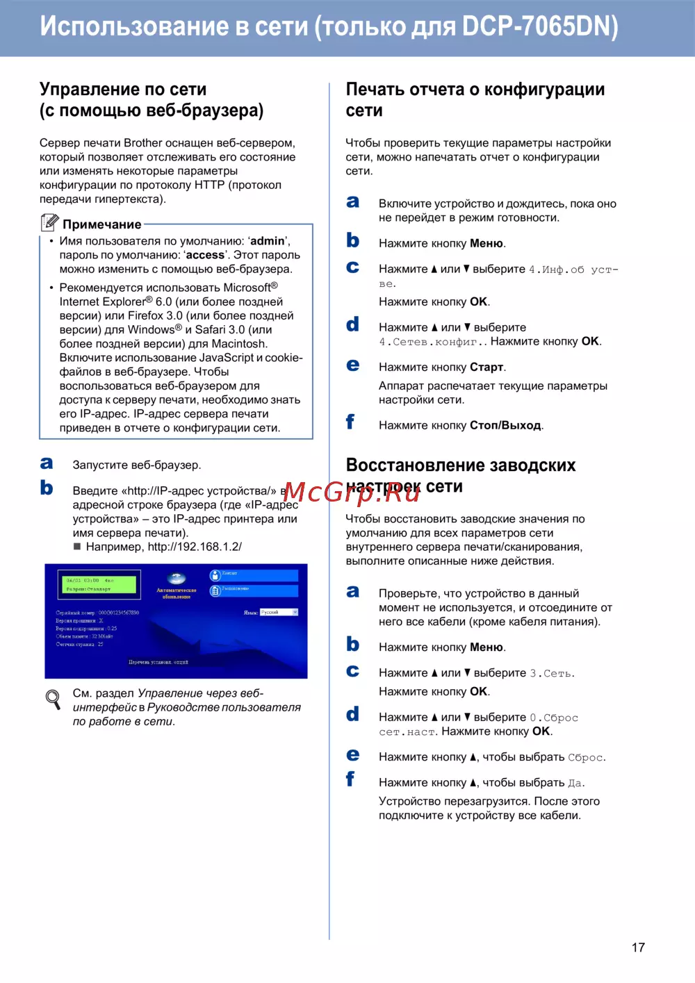 Brother DCP-7055W [17/20] Использование в сети только для dcp 7065dn