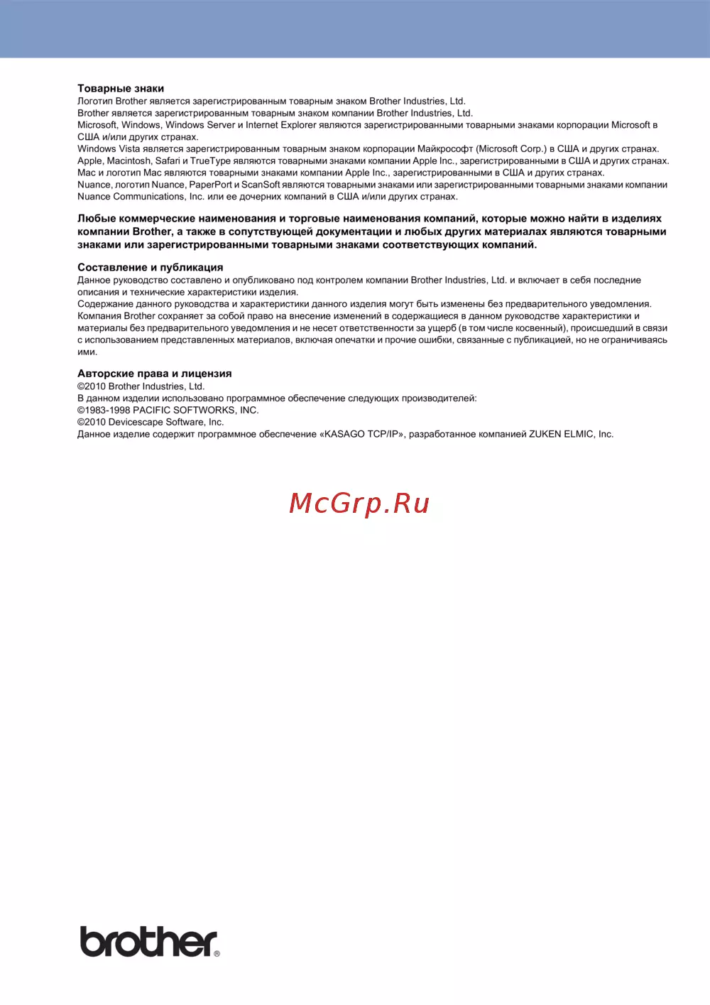 Brother DCP-7055W — информация о товарных знаках и авторских правах на продукцию [20/20]