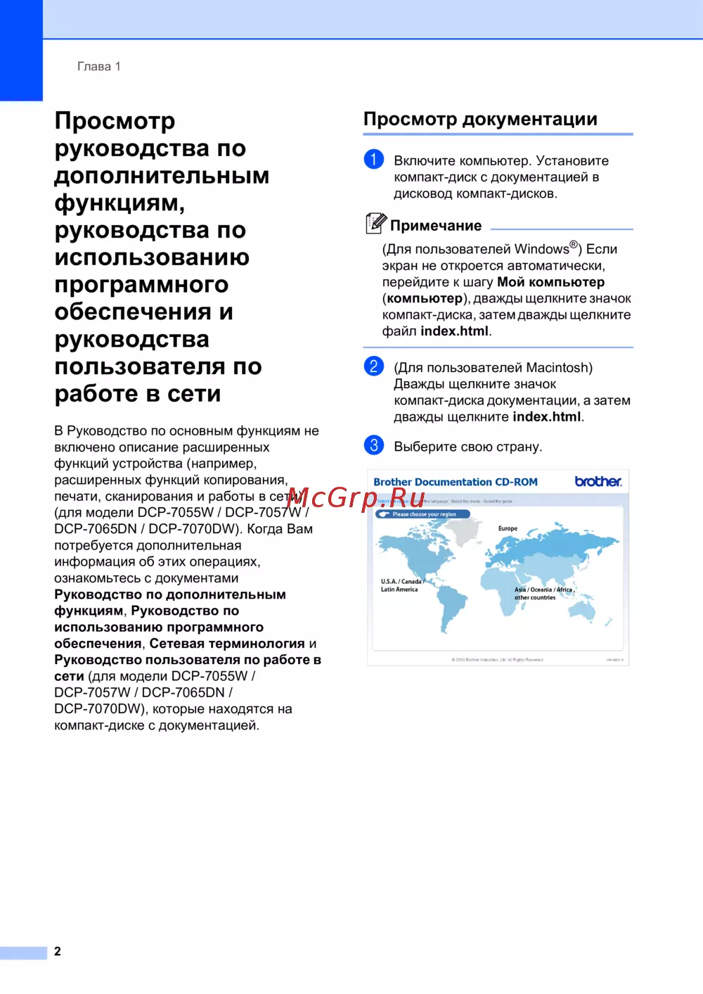 ![Brother DCP-7070DW [10/126] Просмотр руководства по дополнительным функциям руководства по использованию программного обеспечения и руководства пользователя по работе в сети](/views2/1044568/page10/bga.png)