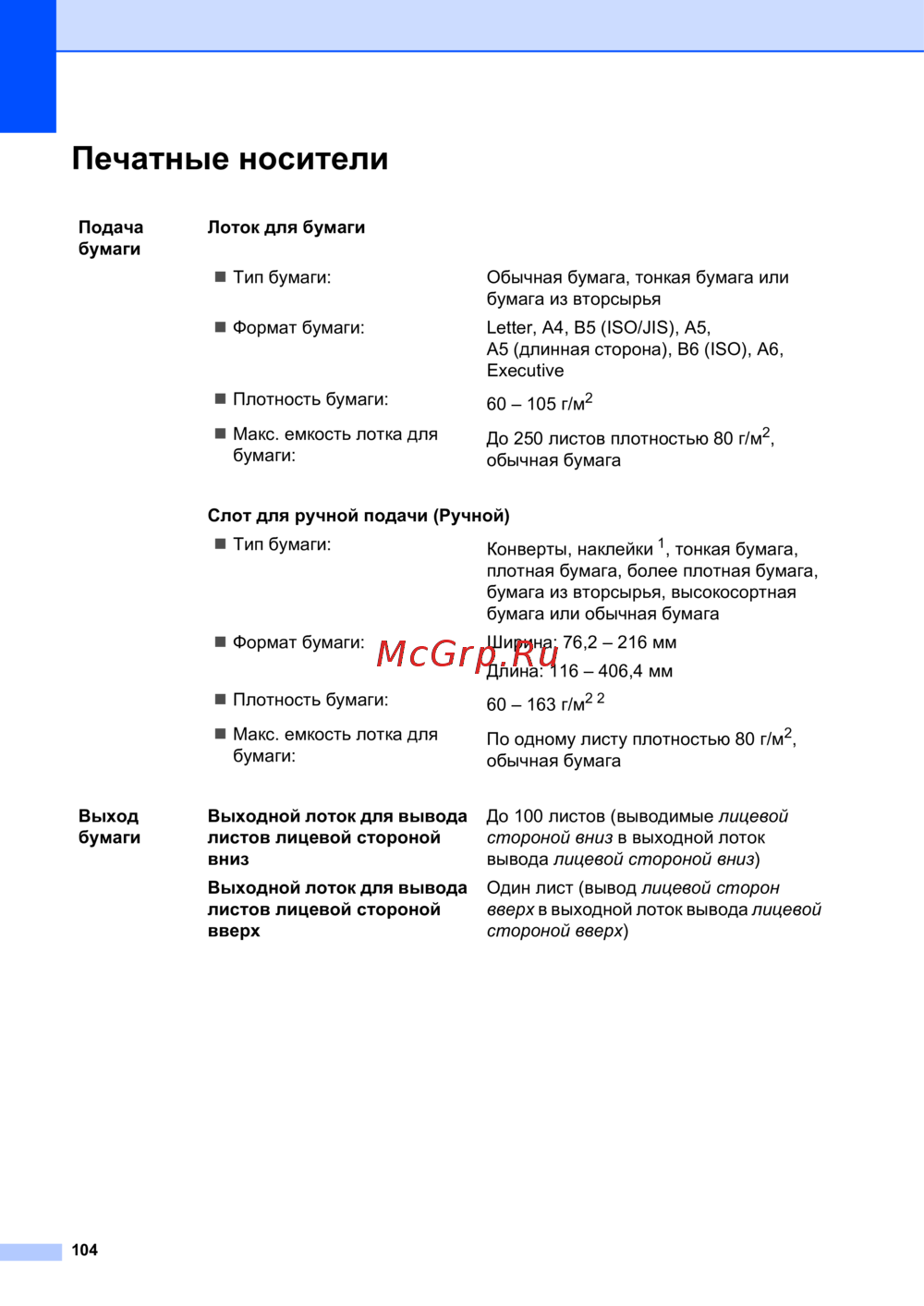 - Печать на обычной бумаге или бумаге из вторсырья из слота для ручной подачи p.19
