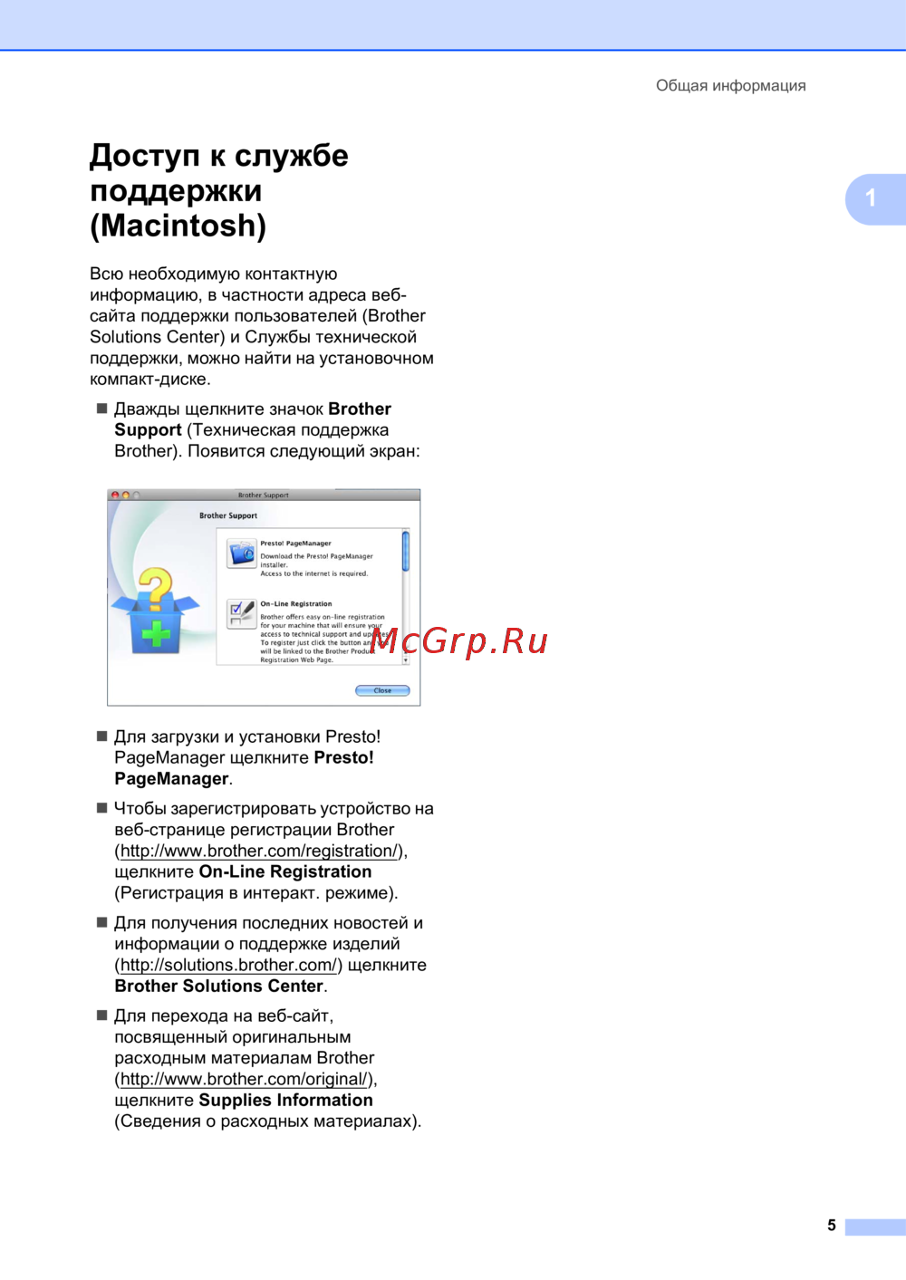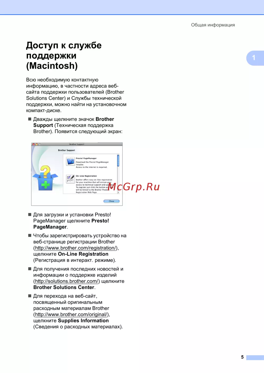 Brother DCP-7057 [13/126] Доступ к службе поддержки macintosh