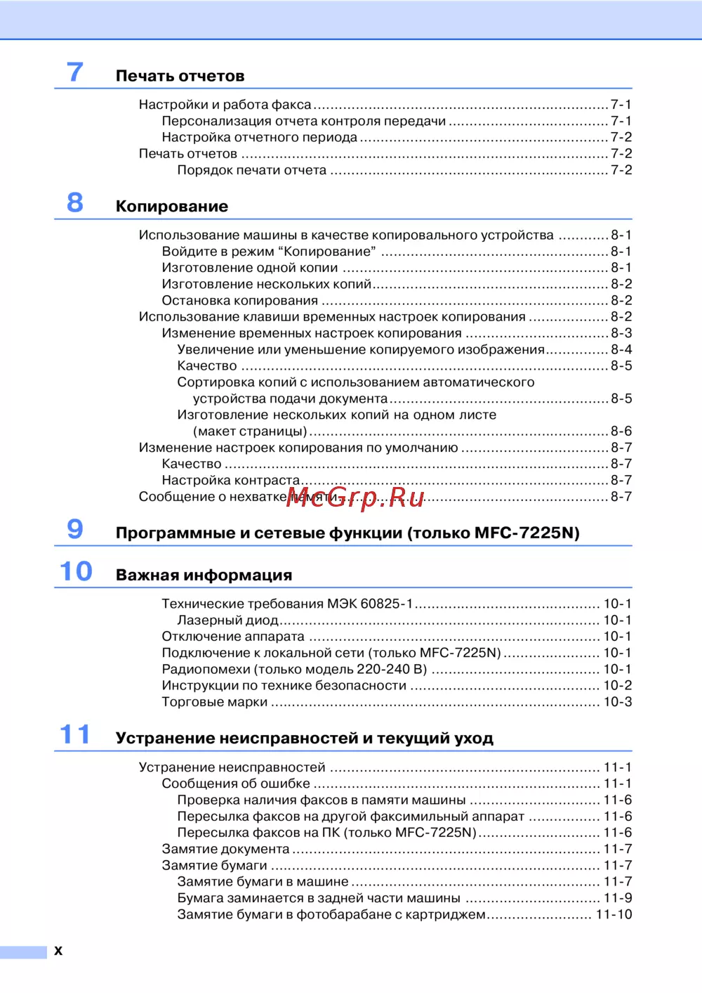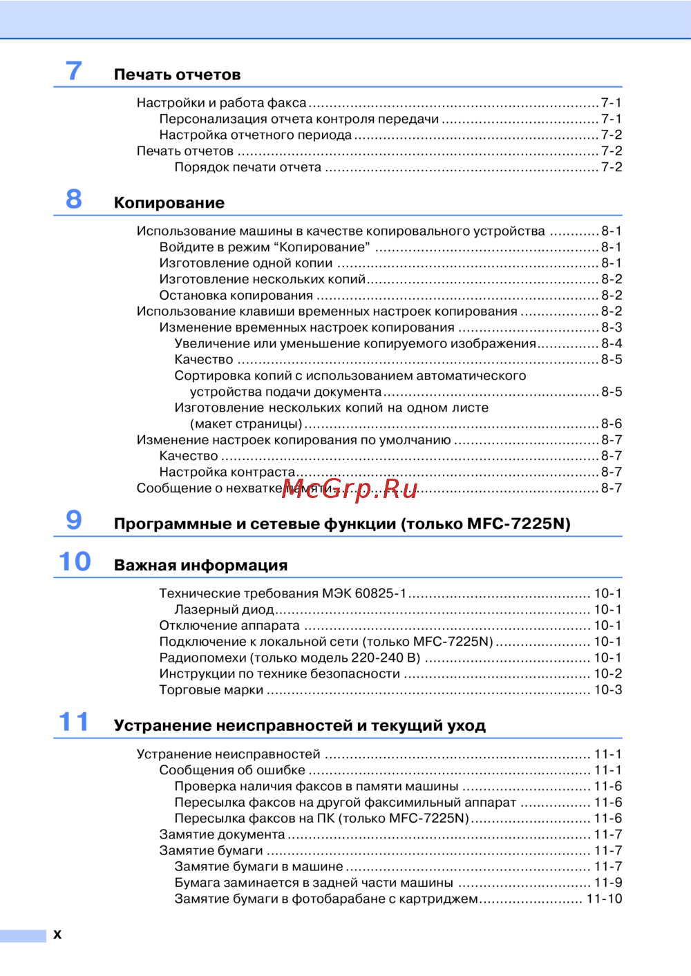 - Программные и сетевые функции только mfc 7225n p.12