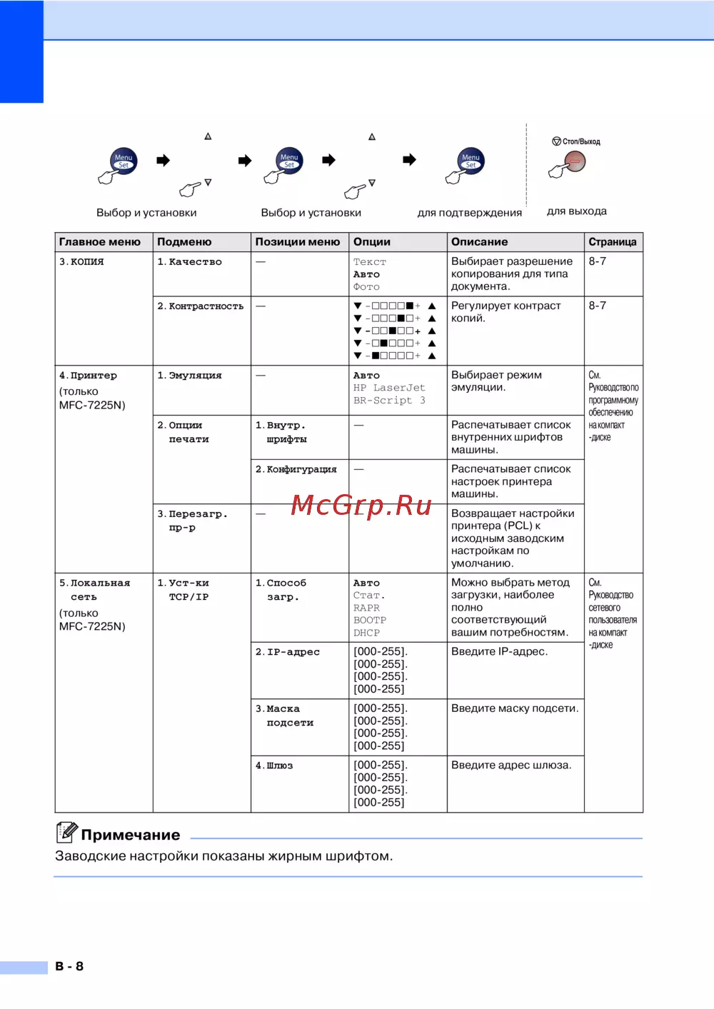 - Интерфейсы только fax 2920 и mfc 7225n p.136
