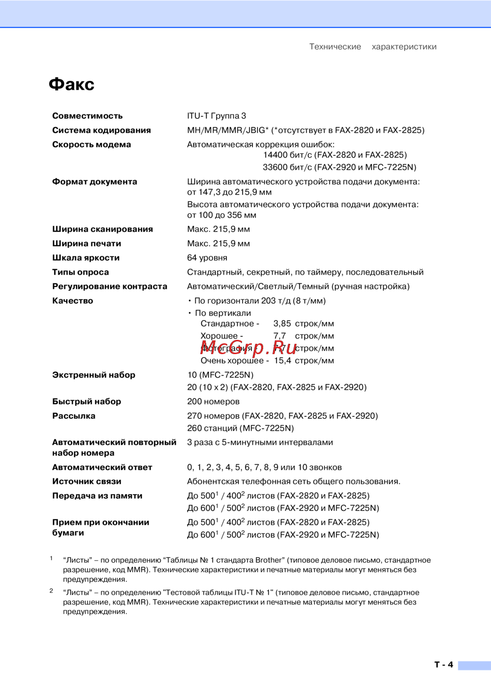 - Интерфейсы только fax 2920 и mfc 7225n p.136