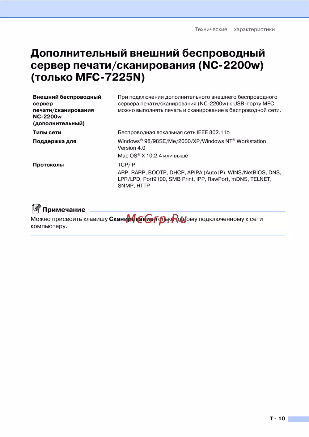 - Дополнительный внешний беспроводный сервер печати сканирования nc 2200w только mfc 7225n p.140