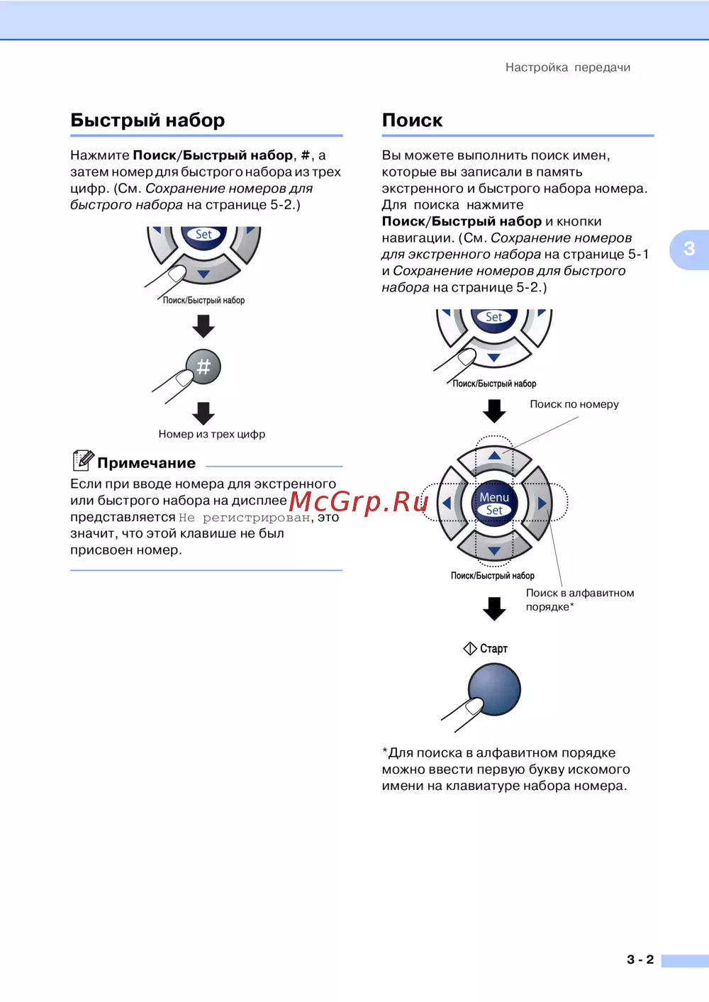 Поиск/Быстрый набор и кнопки