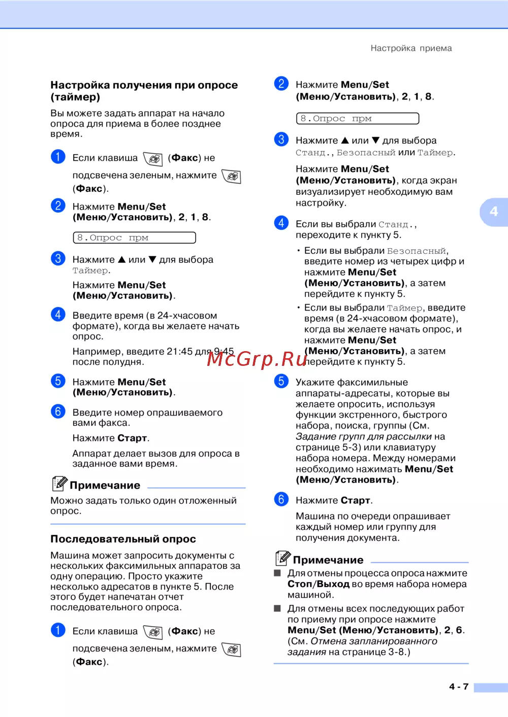 Brother FAX 2825 — настройка приема факсов с таймером и последовательным опросом [58/147]