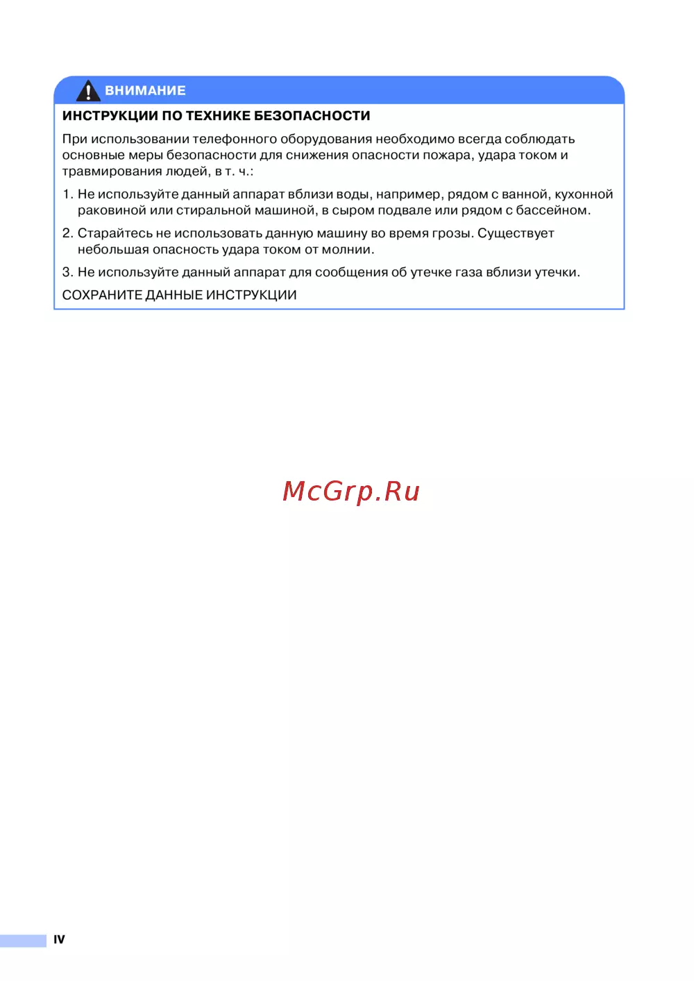 Следуйте инструкциям по технике безопасности при использовании телефонного оборудования, чтобы избежать пожара, удара током и травм. Узнайте важные рекомендации.