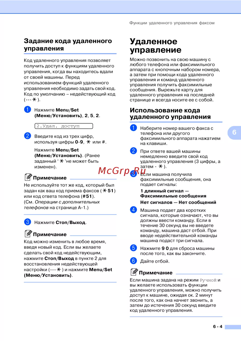 Brother FAX 2825 — удаленное управление факсом: настройка и использование кода [66/147]