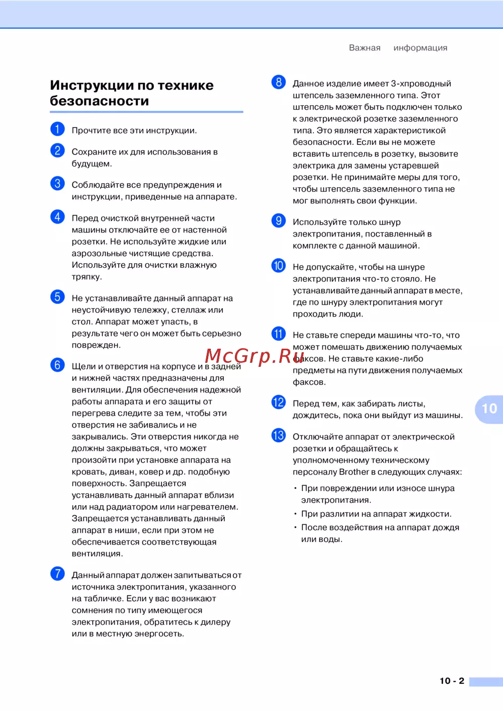 Brother FAX 2825 — инструкции по технике безопасности для бытовых аппаратов [80/147]