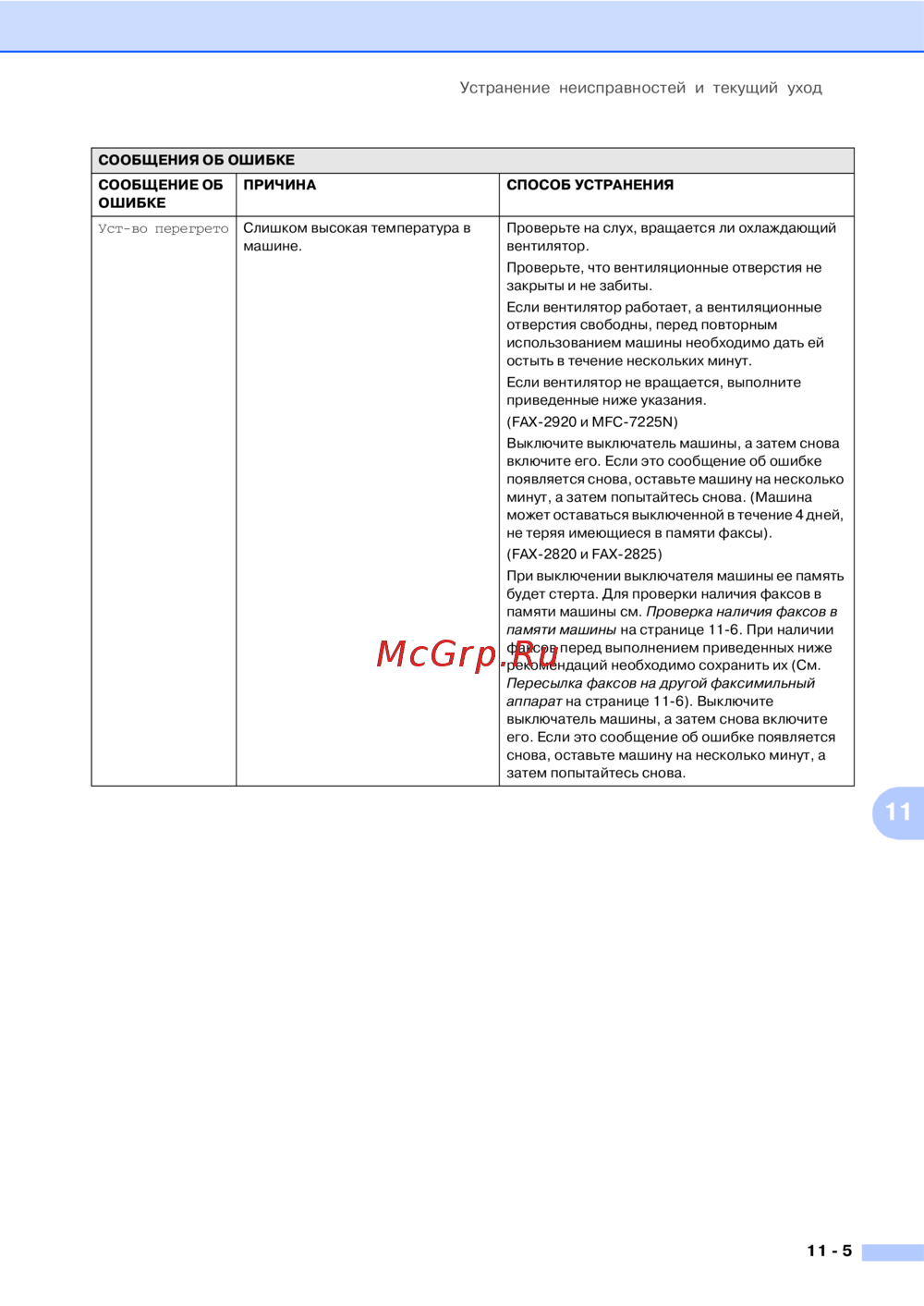 Brother FAX 2825 — устранение перегрева и ошибок в технике: инструкция и советы [86/147]