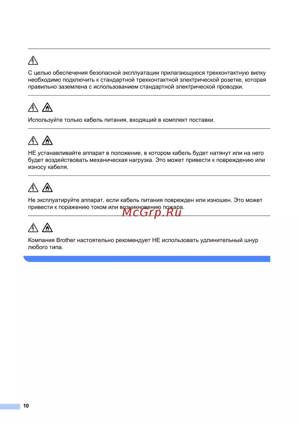 Компания Brother настоятельно рекомендует НЕ использовать удлинительный шнур