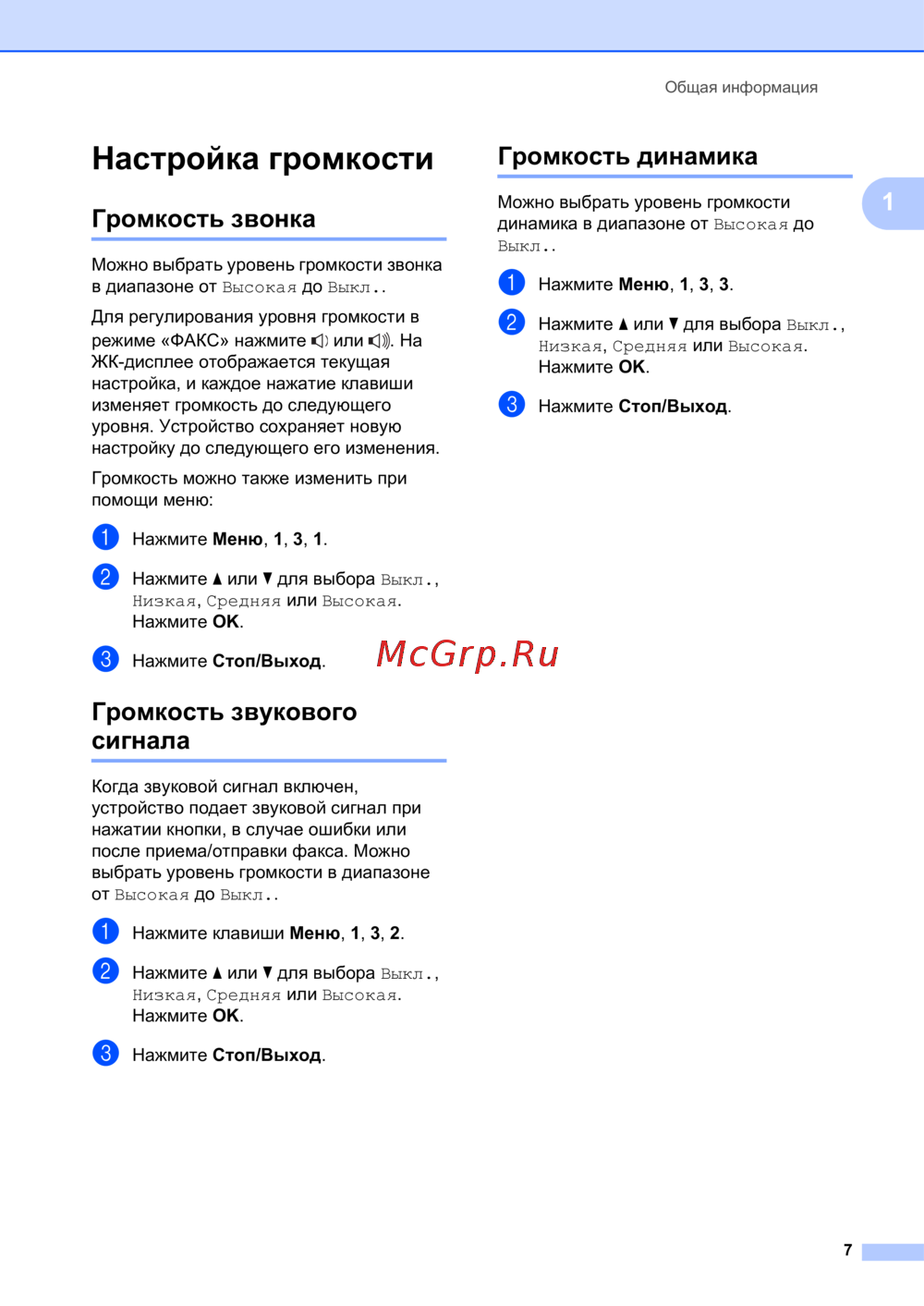 Brother FAX-2845 — настройка громкости устройства: пошаговое руководство [15/127]