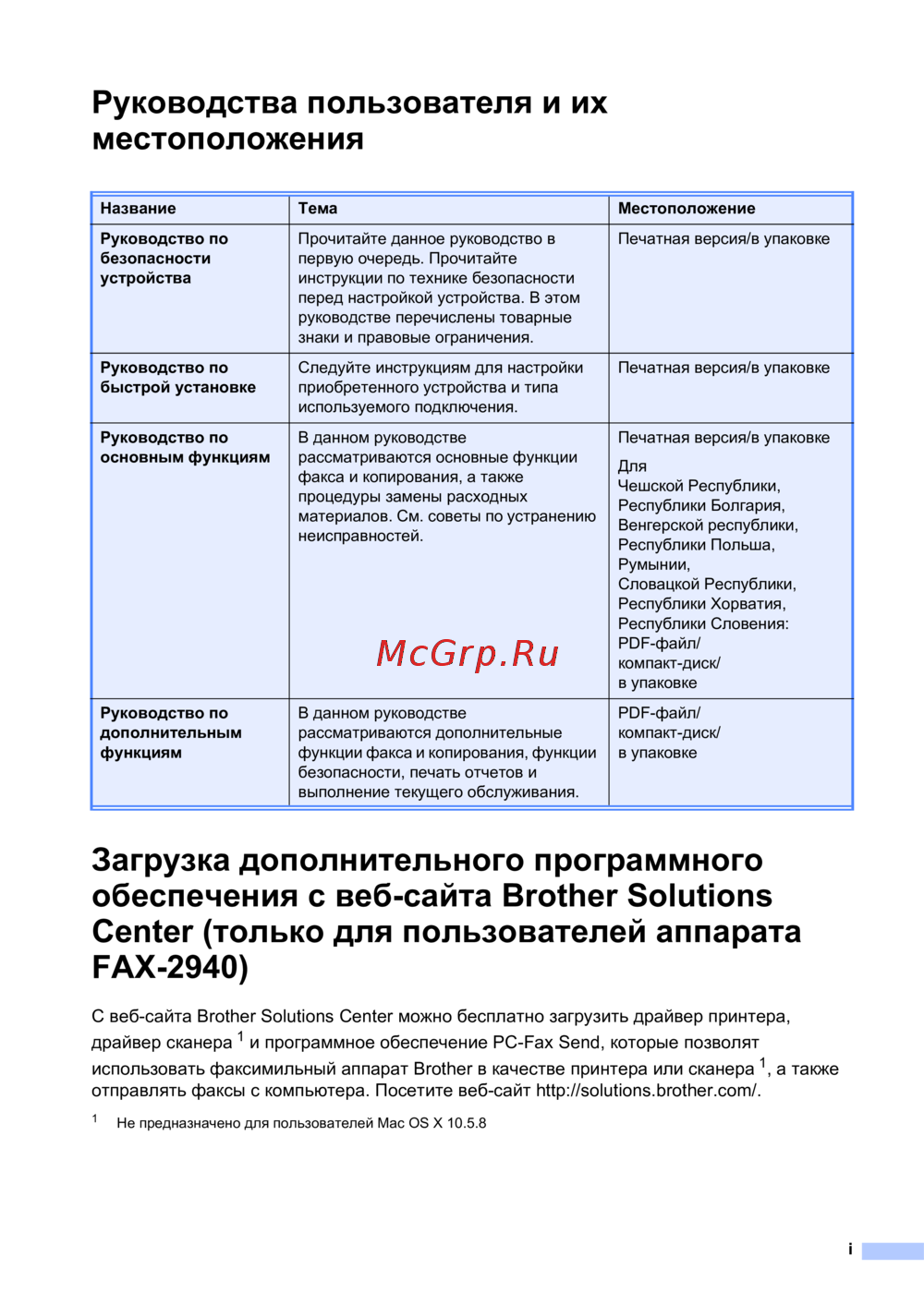 - Загрузка дополнительного программного обеспечения с веб сайта brother solutions center только для пользователей аппарата fax 2940 p.3