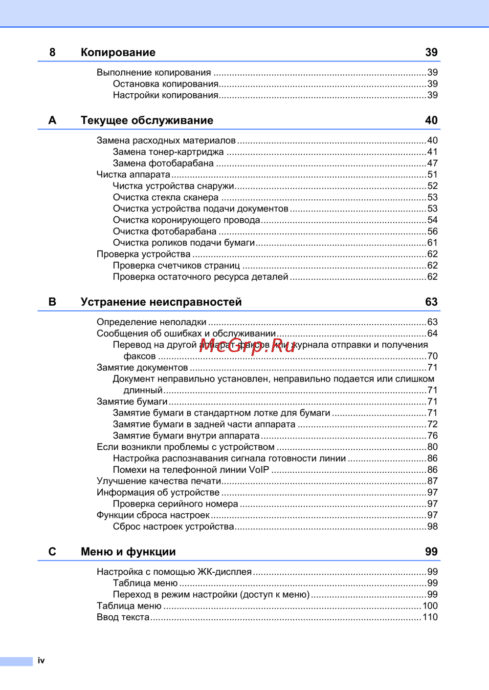 ![Brother FAX-2840 [6/127] A текущее обслуживание 40](/views2/1406001/page6/bg6.png)
