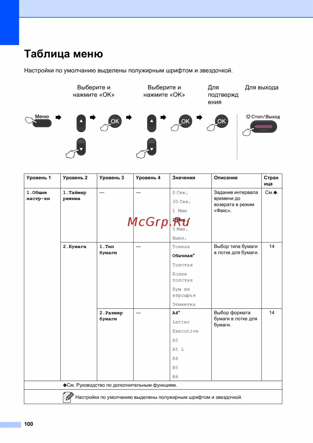 Изучите настройки меню и параметры бумаги для оптимальной печати. Узнайте, как выбрать тип и размер бумаги, а также установить таймер режима.