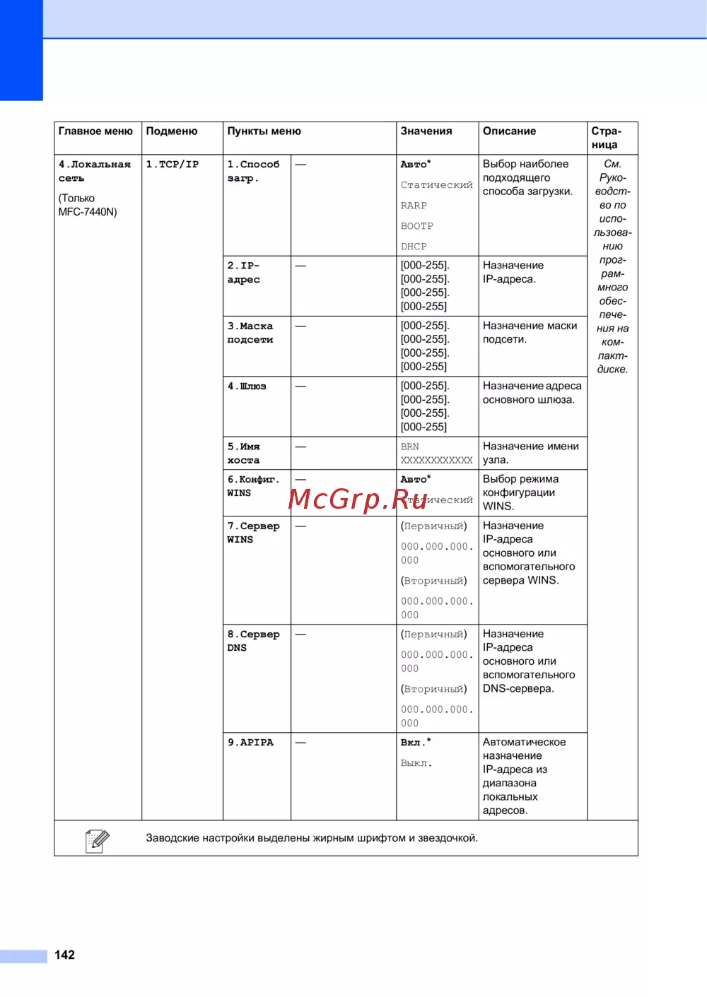 - Проводная сеть ethernet mfc 7440n и mfc 7840w p.172