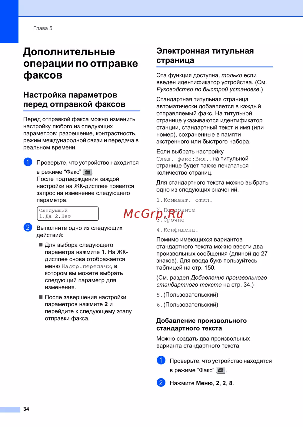 Brother MFC-7840W — настройка параметров отправки факсов: пошаговое руководство [44/187]