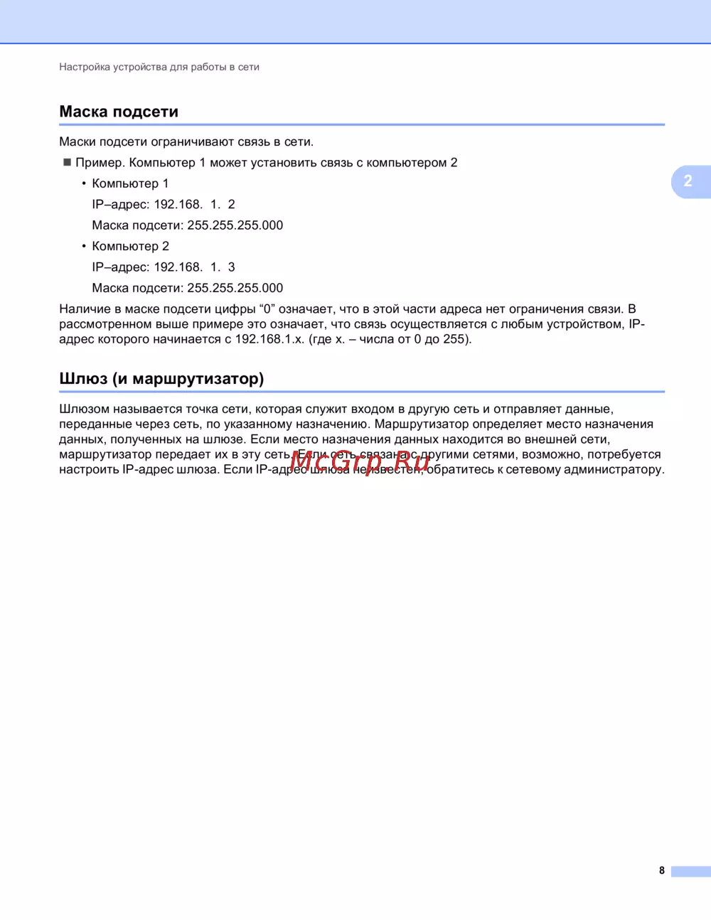 Brother MFC-7460DN — настройка устройства для работы в сети: маска подсети и шлюз [12/31]