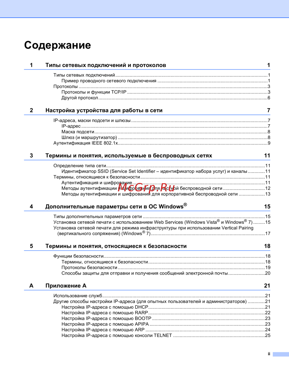 Brother MFC-7460DN — типы сетевых подключений и протоколов: Полное руководство [3/31]