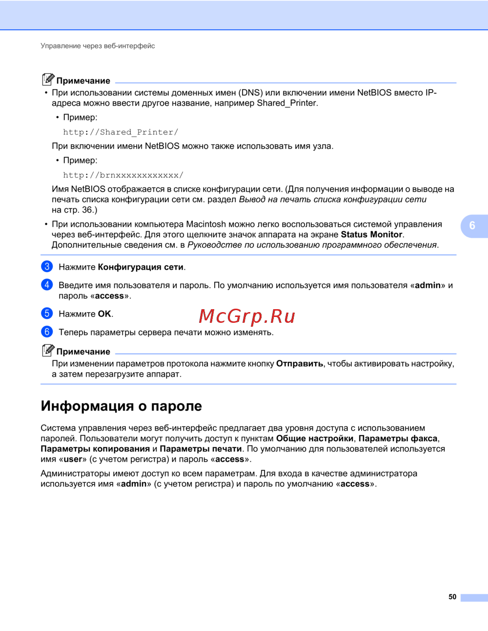 Brother MFC-7460DN — управление устройствами через веб-интерфейс: пошаговое руководство [55/85]