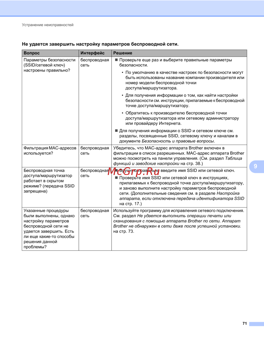 Brother MFC-7460DN — решение проблем с настройкой беспроводной сети и подключением [76/85]