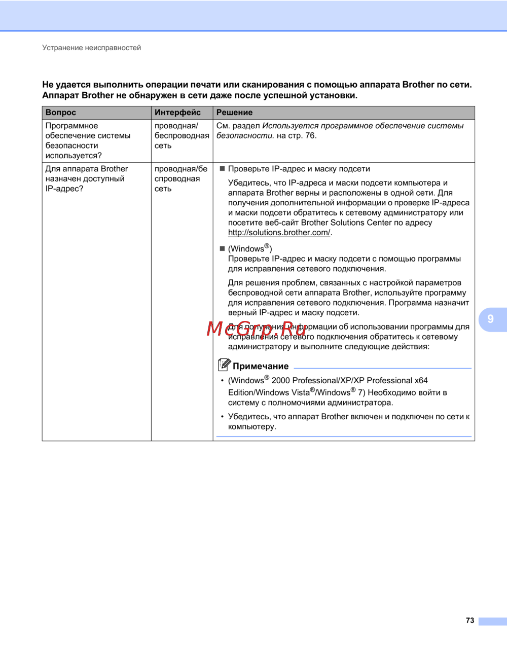 - Не удается выполнить операции печати или сканирования с помощью аппарата brother по сети аппарат brother не обнаружен в сети даже после успешной установки p.78