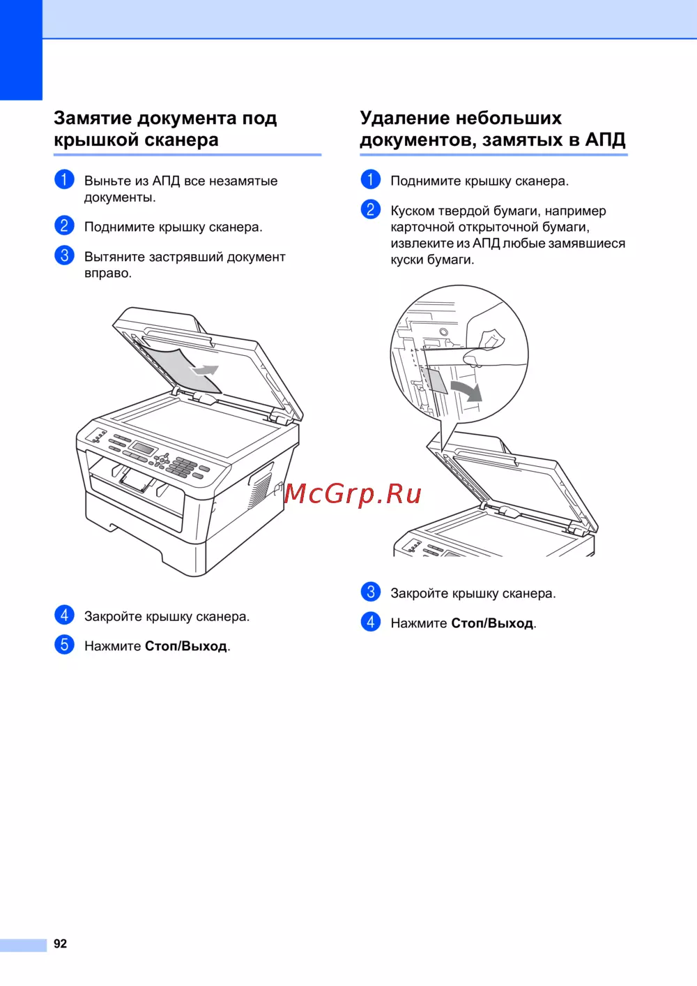 Brother MFC-7460DN [102/180] Замятие документа под крышкой сканера