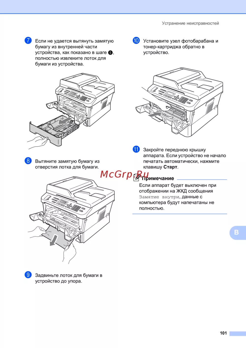 Brother MFC-7460DN — устранение неисправностей: советы по извлечению бумаги [111/180]
