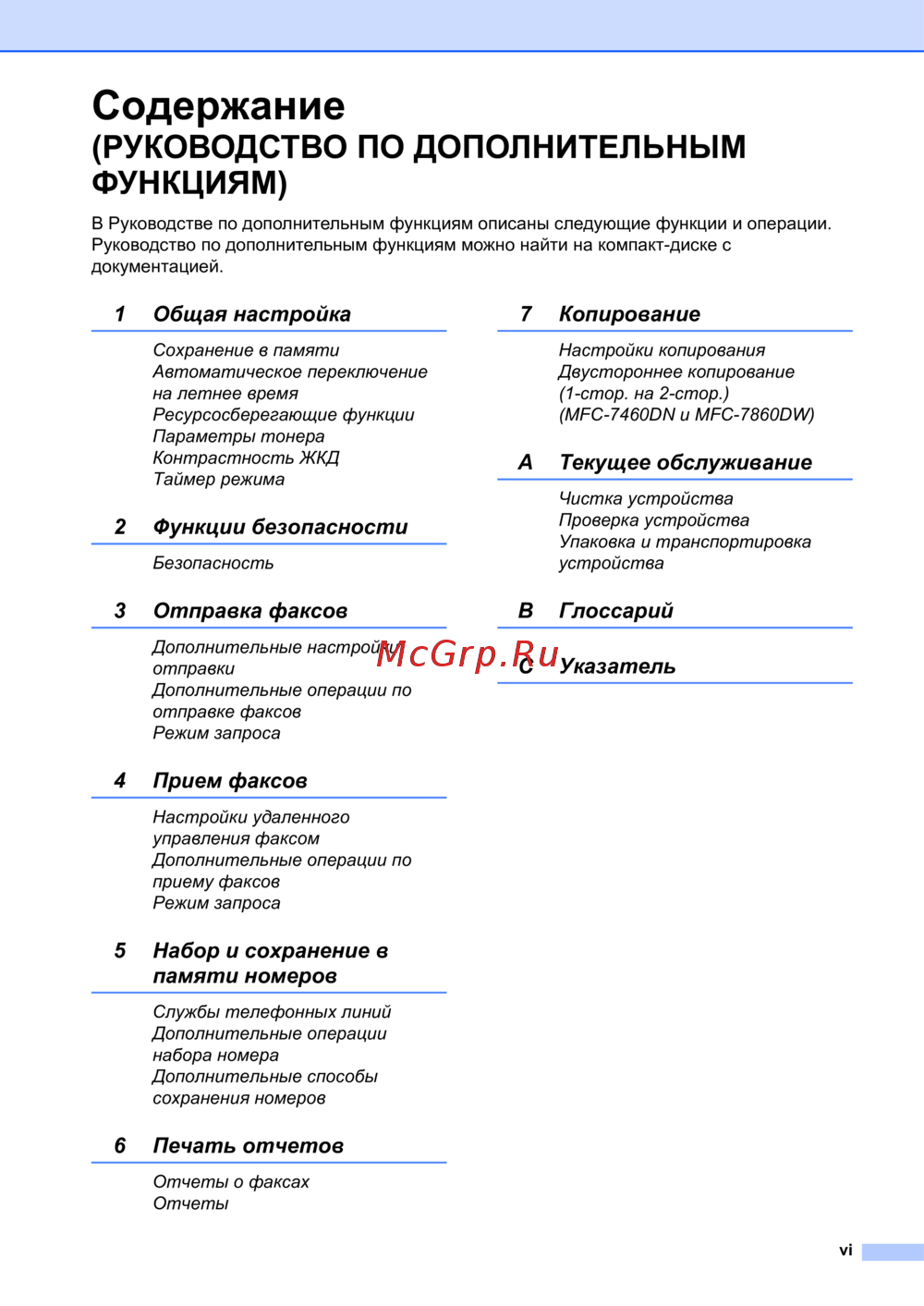 Brother MFC-7460DN — руководство по дополнительным функциям: настройки и операции [9/180]