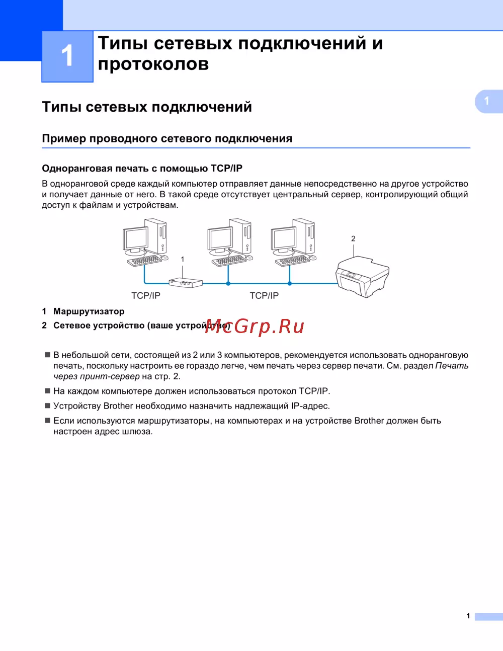 Brother MFC-7860DW — типы сетевых подключений и одноранговая печать [5/31]