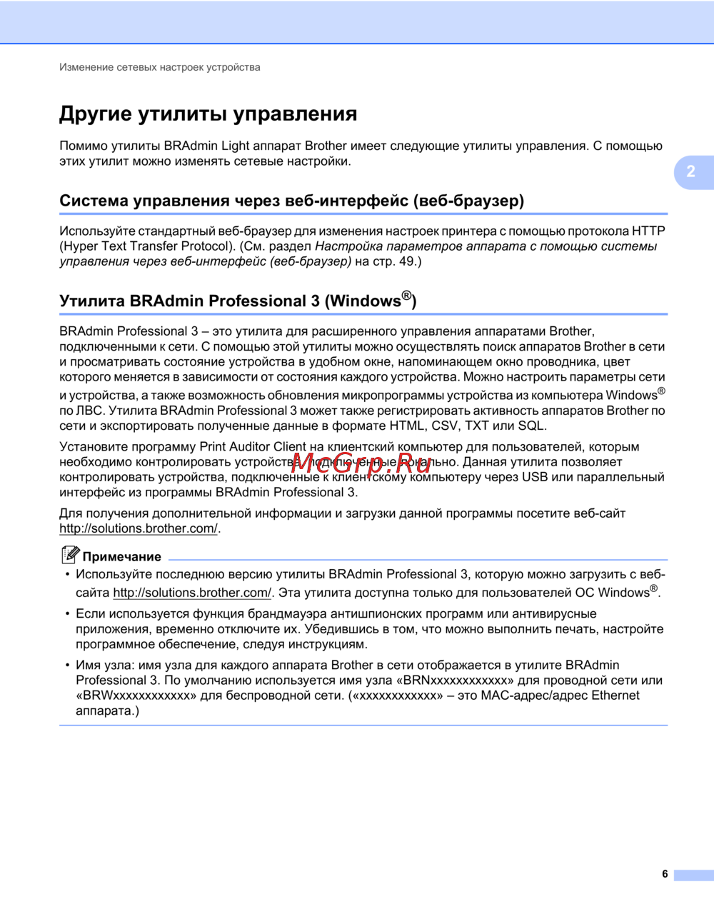 Помимо утилиты BRAdmin Light аппарат Brother имеет следующие утилиты управления. С помощью